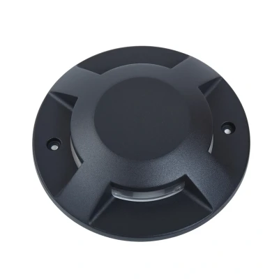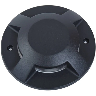 Lights.coRound LED floor spotlight Jeffrey with light outlet on four sides, IP code IP67 Jeffrey impresses with its simple, round shape and timeless appearance. Contrary to what one might assume at first glance, this light is not a recessed version, but an easy-to-install surface-mounted floor light that can be walked on, as it can bear loads of up to 500 kg. The built-in LEDs are energy-efficient, emit a warm white light and provide soft lighting for outdoor areas, which is ideal for orientation. This allows you to illuminate paths and specific areas around the house in a pleasant way, making trip hazards more visible. Both the IP code (IP67) and the impact resistance (IK10) are high, making Jeffrey a robust light for outdoor use with light emitted on four sides.