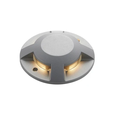 Lights.coRound LED floor spotlight Jeffrey with light outlet on four sides, IP code IP67 Jeffrey impresses with its simple, round shape and timeless appearance. Contrary to what one might assume at first glance, the light is not a recessed version, but a relatively easy-to-install floor lamp that can be walked on because it can bear loads of up to 500 kg. The LEDs are energy-saving, emit a warm white light and provide soft lighting for outdoor areas, which is ideal for orientation. This allows you to illuminate garden paths and areas in the courtyard in a pleasant way, making trip hazards more visible. To connect several lights together, there is the option of through-wiring. Both the IP code (IP67) and the impact resistance (IK10) are high, making Jeffrey a robust outdoor light with light emitted on four sides.