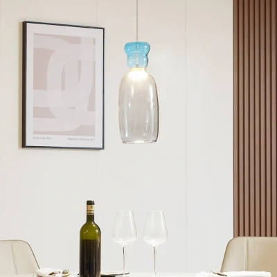 LED pendant light Fay with light grey glass shade Thanks to its special colour design in light grey and light blue, the LED pendant light Fay is a beautiful eye-catcher in the living area both when switched on and off. The warm light is directed towards the floor and emitted glare-free into the surroundings through the glass shade. Fay can be used wonderfully as a light source in the kitchen, dining room or living room, for example. The rounded lampshade is complemented by a light blue glass element that perfectly rounds off the decorative look.