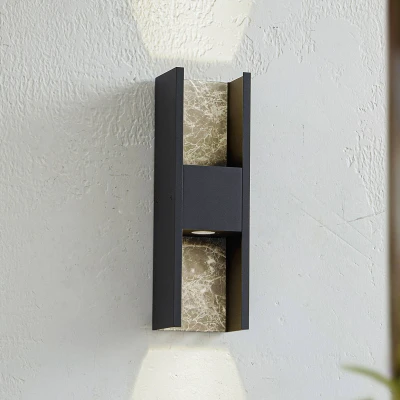 Lucande LED outdoor wall light Lavrin, black/marble, aluminium