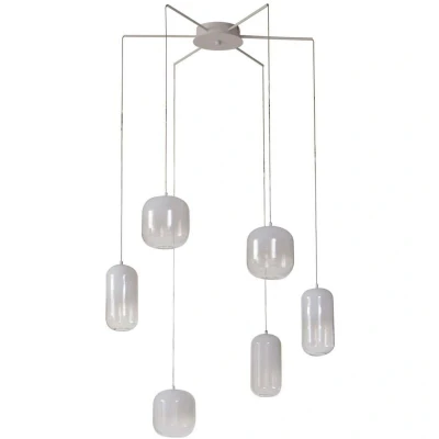 General description This LED Ceiling Light 'Avelina' features a modern industrial design that enhances the ambiance of your living room, dining room, or office. Its stylish aesthetics combined with energy-efficient LED technology make it a perfect addition to any contemporary space, providing a cozy atmosphere with warm LED bulbs. Technical specifications Type: Pendant light Material: Metal and glass Color: White Number of bulbs: 6 Installation Ready to use - Lightbulb included: The package includes the light fixture and the lightbulb for easy assembly. Usage Ideal for living rooms, dining rooms, bedrooms, kitchens, hallways, and offices. Use warm LED bulbs to create a cozy and homely atmosphere. Other information