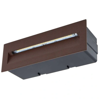 Lights.coRust-coloured Loya LED recessed wall light in an angular design The Loya LED recessed wall light is an angular lighting solution that impresses not only with its aesthetic design in a rust finish, but also with its high functionality. Made of robust aluminium, this light is specially designed for outdoor use, which is underlined by the IP54 protection rating. It is therefore ideal for bathing terraces and balconies in a warm white light, creating a welcoming atmosphere. The integrated LED light source provides a pleasant light colour of 3,000 Kelvin. The Loya LED light is not only an eye-catcher, but also a sign of energy-conscious light, as LED technology stands for efficient and long-lasting lighting.