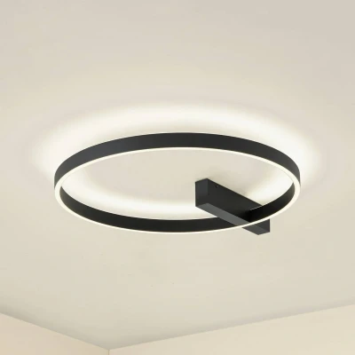 Isalin dimmable LED wall light: elegance meets versatile lighting control The LED wall light in stylish black combines modern design with functional versatility. Made of metal and acrylic, this light offers an impressive combination of aesthetics and durability. With a diameter of 60 cm, it fits seamlessly into various living areas such as the living room, dining room or hallway and adds stylish accents. A special feature of this light is the CCT function, which allows the light colour to be adjusted from warm white (2,700 K to 3,000 K) to cool white (4,000 K). The integrated LED light source provides energy-saving light, while dimmability via an external dimmer allows for individual light control. With a colour rendering index of 80 Ra, this LED wall light offers a pleasant and natural light quality that gives every room a special atmosphere.