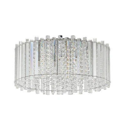 Limana 6-bulb ceiling light with a crystal lampshade This beautiful light source brings a special character to the room that is definitely worth seeing. The frame is made of solid iron, while the lampshade is made of high-quality crystal. The filigree crystal elements create an individual play of light on the walls and ceiling. Equipped with a total of six light points, Limana can be fitted with both dimmable and non-dimmable bulbs - the choice is up to the user. However, LED bulbs, which are particularly energy-efficient thanks to their technology, are particularly suitable. This light can be used both in the home and in commercial settings.