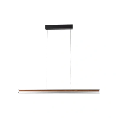Lights.coDimmable Lutana LED pendant light in a linear design The Lutana LED pendant light combines modern design with functional lighting. It features a stylish combination of light, natural-looking wood tones and delicate rose gold. The integrated LED light source produces a warm white light that creates a pleasant atmosphere and is dimmable in stages using the wall switch. The light is emitted upwards and downwards along the entire length of the lampshade. With its clear design language, Lutana fits perfectly into modern living concepts and becomes a stylish eye-catcher above any dining table.