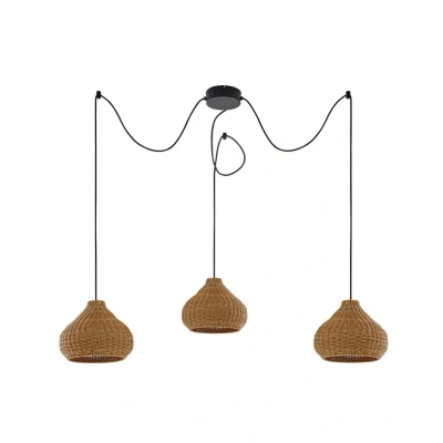 Lights.coThe Taniola 3-bulb rattan pendant light – a rustic companion for outdoor areas The Taniola outdoor hanging light combines robust materials and rural charm to create a lighting element that transforms outdoor areas such as terraces and balconies into inviting retreats. Made from a combination of rattan and iron, the 3-bulb pendant light features a harmonious colour contrast of beige and black that radiates naturalness and elegance. With an IP44 IP code, the light is optimally protected against the ingress of foreign bodies and splashing water, making it a reliable source of light in outdoor areas. The option of adjusting the brightness using an external dimmer (not included) offers additional flexibility to create the desired atmosphere – from gently subdued to clear and bright.