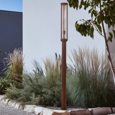 Alivaro lamp post in rust – elegance meets robustness with IP65 The Alivaro lamp post is not only special because of its modern design, but also because of its high IP65 protection rating. This elegant lighting solution is specially designed to withstand external influences while creating an attractive atmosphere. The rust-coloured surface adds a touch of elegance to any outdoor area, while the robust construction ensures that the light retains its beauty even in harsh conditions. If the light is fitted with dimmable bulbs, the brightness can be adjusted as required using an external dimmer. With this lamp post, every path is not only safely illuminated, but also stylishly highlighted.