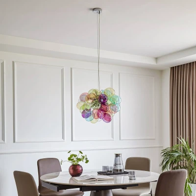 Colourful Diborah pendant light with glass balls You will love this beautifully designed light. The brightness can be adjusted to suit your mood using an external dimmer (not included). Diborah has an attractive style and blends in perfectly with any living space. This light brings together all the qualities and special features of the Lucande brand. Glass is used in its manufacture. The socket requires bulbs with a G9 base. The ceiling light creates a wonderful ambience and shows off any interior to its best advantage. It is ideal for successfully rounding off the look of your living spaces and can also serve as a decorative element when switched off.