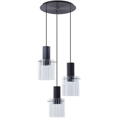 ManoManoGeneral description This stylish Eirian pendant light features a modern industrial design, making it a perfect addition to your living room, dining room, or office. With its black metal and glass construction, it adds a charming touch to any contemporary space while providing excellent lighting. The lamp is designed to create a cozy and warm atmosphere in your home. Technical specifications Diameter: 40 cm Socket type: E27 Number of bulbs: 3 Color: Black Installation Requires an external dimmer switch for dimming (not included). Usage Ideal for enhancing the ambiance in living rooms, dining rooms, or offices. Can be used to create appealing lighting effects in your interior design. Other information