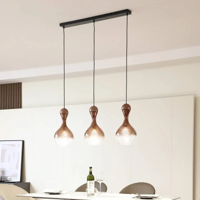 Lucande pendant light Lyrisa, 3 bulb, copper coloured, glass, 22cm
