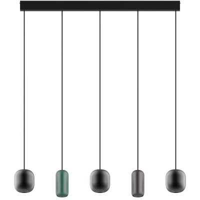 General description The Lucande Narion pendant light is a stylish and modern lighting solution designed for living rooms and dining rooms. Featuring a linear shape and a combination of five round iron shades in black, dark green, and brown, this elegant lamp not only enhances the aesthetic of your space but also provides functional lighting for dining and relaxation. Technical specifications Type: Pendant light Number of bulbs: 5 Material: Metal (iron) Shade colors: Black, dark green, brown Light direction: Downward Usage This pendant light is perfect for creating a cozy and warm atmosphere in your home. It is ideal for use in living rooms, dining rooms, or offices, adding a modern touch to any loft, apartment, or house. Easily dimmable with an additional dimmer switch (not included), it allows you to adjust the light intensity to suit your mood and occasion. Other information