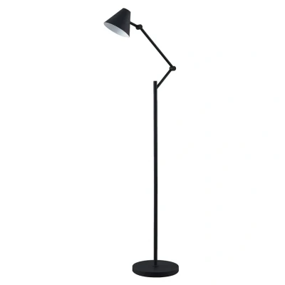 Lamp MastersPhina Black Floor lamp has a sleek, timeless shape and a versatile dark colour scheme that makes this particular lamp model ideal for all kinds of interiors. The simple design can be used both to accentuate an existing minimalist style concept and to balance out more variegated interior styles. The lamp's E27 socket fits a wide range of bulb types, giving you the freedom to choose the light source you like best. The light shines out through the wide opening at the bottom of the lampshade in a clear, direct glow. As the frame is divided into several joints, the position of the lamp and thus the direction of the light can be adjusted with the utmost precision. The inside of the lampshade is finished in white to reflect the light and make it appear even brighter. Phina is a whole series of beautiful lights from Lucande, all with the same simple design concept.