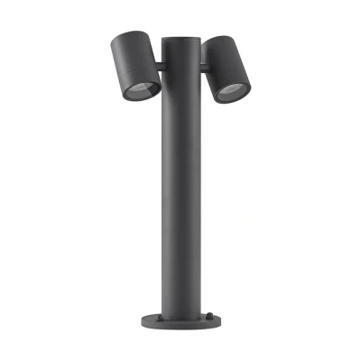 Lights.coModern Maloney aluminium pillar light in dark grey The Maloney aluminium pillar lamp ensures that the pavement or garden is perfectly lit even at night. The slim pillar light is finished in a discreet dark grey and its shape is created by a narrow stand and two cylindrical lampshades that can be flexibly aligned. These lampshades can be equipped with the appropriate bulbs and thus always provide the appropriate light. Thanks to the IP54 IP code, the Maloney pillar lamp is protected against splashing water and dust, which gives it a robust character.