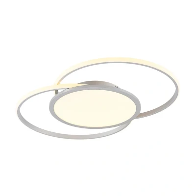 Stylish Senne LED ceiling light in silver with practical functions The Senne LED ceiling light comes in a modern design and with practical features that make life easier. Its body is made of aluminium and iron and features an interesting pattern consisting of a round element and two rings surrounding it. The permanently installed LEDs can be infinitely dimmed in terms of brightness (10% - 100%) using a wall switch or remote control, and the light colour can be controlled just as easily (2,700 K, 4,000 K and 6,500 K). These functions give the Senne LED ceiling light a certain degree of flexibility and make it the perfect companion when it comes to lighting a living room. The stylish, modern exterior can be effortlessly integrated into the interior design without overshadowing the rest of the furniture.