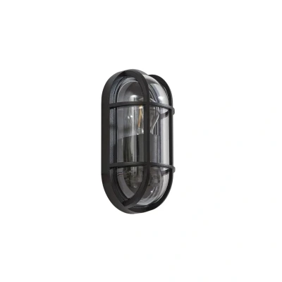 Lights.coSerine outdoor wall light in a marine look Experience how the Serine outdoor wall light not only illuminates your outdoor area, but also significantly characterises its ambience. With an IP code of IP65, this light is specially designed to withstand the elements and provide a reliable and long-lasting source of light on both balconies and patios. Its height of 27 cm and appealing design in classic black blend harmoniously into any environment, creating an atmosphere that can be both calming and energising. The look is rounded off by a black grid placed in front of the lampshade, giving the outdoor light a maritime look. The bulb is visible through the transparent glass shade, making it ideal for use as a decorative light source.