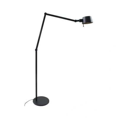 Lights.coBlack Silka floor lamp with adjustable arms The very flexibly adjustable Silka floor lamp in black is a modern highlight for the study. The inside of the lampshade is gold, picking up on an elegant and popular colour combination. With a height of over 2 metres, it is a real eye-catcher and always provides the right light in the right place. Its frame is made up of three rods, each of which is connected by a joint, allowing a high degree of adjustability. The truncated cone-shaped lampshade is open at the bottom and directs the light directly towards the floor. The operating switch is located on the cable.