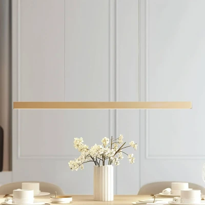 Lights.coMylosh LED pendant light in a modern design with smart functions The LED pendant light represents a modern style that enriches both living and dining rooms with a warm golden hue and efficient lighting. The integrated LED light source not only promises energy-efficient illumination, but also a long service life and low maintenance. Thanks to its compatibility with WLAN and Tuyasmart, this light is dimmable and enables customised lighting design that can be controlled via the iOS or Android app. The pendant light comes with an included dimmer that allows you to easily adjust the light intensity to create the right atmosphere for any situation. The Mylosh LED pendant light is an expression of elegance and functionality that adds a special touch to any room.