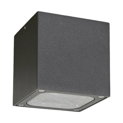 Lights.coTanea dark grey LED outdoor ceiling light in square shape Tanea is ideal for lighting outdoor covered areas such as patios or house entrances. The LED ceiling light with its cube-shaped body is relatively simple and can be used in a variety of ways. Thanks to its LED technology you don’t have to worry about power consumption at all, which remains low despite good light output.