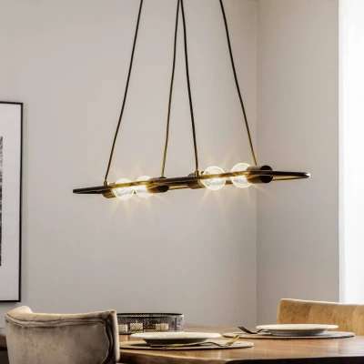 General description This stylish Tornike pendant light is made of high-quality steel and features a modern industrial design, making it a perfect addition to your living room, dining room, or office. With its four exposed sockets, it creates a cozy and warm atmosphere, enhancing the modern vibe of any loft, apartment, or house. Technical specifications Material: Steel Color: Matt black Number of sockets: 4 Socket orientation: Two sockets face each other in a frame Installation Ideal for installation above a dining table. Usage Easily dimmable with an extra dimmer switch (not included). Suitable for filament bulbs to enhance the aesthetic appeal. Other information