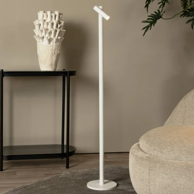 Functional, simple rechargeable floor lamp Antrim, dimmable The Antrim rechargeable LED floor lamp has a simple, straightforward design. Its minimalist design makes it universally applicable, as do its practical rechargeable battery operation and high IP code. This makes it suitable for both indoor and outdoor use. Its swivelling spot produces a direct, directional light that can be dimmed using the push-button switch. Antrim is made of aluminium and has a uniform colour concept. Thanks to the charging station, the battery can be easily recharged at any time.