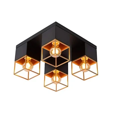Lucide Flush Ceiling Light, Metal, E27, 160 W, Black, Gold