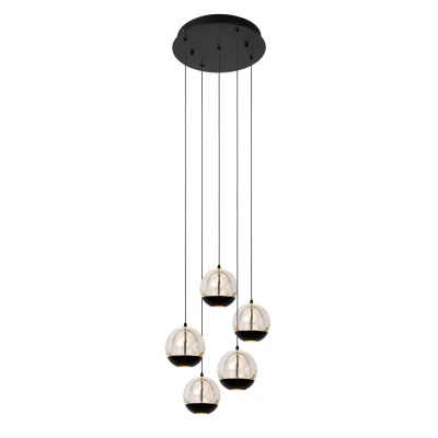 Sentubal is not just any pendant light - it is a pendant light designed to create an experience. With its modern and luxurious design, it is guaranteed to be the focal point of your interior. Five pendants descend in a circle from the ceiling plate. You can adjust the height of each pendant from 70 to 150 centimetres. A spherical lampshade made of high-quality glass is attached to the elegant steel cables. The bold details create a strong contrast. On the inside you will find a built-in LED bulb that provides a warm white light. By connecting this pendant to a dimmer, you can add atmosphere to any room in the house. Unique product features: • With integrated dimmable LED light sources • Fitted with warm white light (2700K) • This lamp is adjustable in height • Easy to connect to a dimmer (excl.) • Made of high quality glass Important product features: • Energy consumption: 5x5,2W / 230V / Dimmable (incl.) • Dimensions: Ø35 cm H.150 cm • 3 Years warranty on the fixture