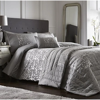 Lucien Jacquard Duvet Cover and Pillowcase Bed Set, Polycotton, Silver, Double