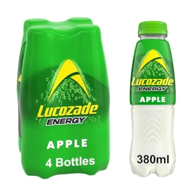 Our refreshing Lucozade Energy Apple is bursting with sparkling flavour. With Glucose and Vitamin B3 to help reduce tiredness, Lucozade Energy helps you get through your day! Lucozade is all about unlocking the potential of people's positivity energy! With Vitamin B3 to help reduce tiredness, Lucozade Energy supports your everyday energy to get you through even your busiest days! As well as tasting great, we also try to do great things to ensure we're doing our bit for a sustainable future! From January 2022, all of our bottles will be fitted with our new 60% transparent sleeve. This gives all our recyclable products the best chance of being turned back into bottles and used again! Enjoy a Zingy and refreshing mouth sensation with Lucozade Energy Apple! Best enjoyed cold. Once opened store in the fridge and drink within 4 days.