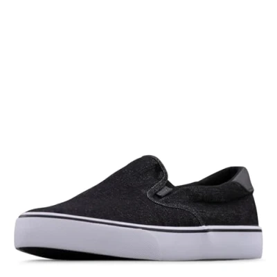 Lugz Men's Clipper Slip on Sneakers, Black/White Denim, 7.5 UK