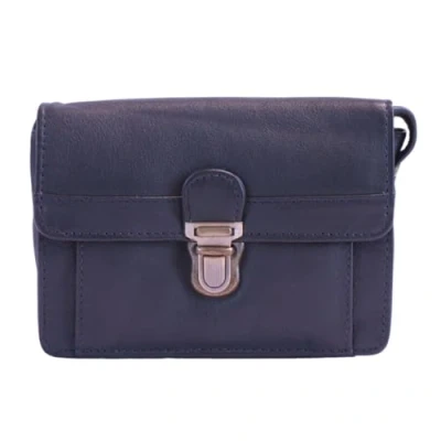 Luigi Leather Cross Body Bag Snap Buckle Closure, Stitched Pattern, Zipper Pocket, Navy, Compact