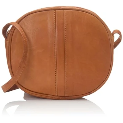Luigi Women's,Teens,Girl's Oval Shaped Cross Body Bag Leather, Adjustable Strap, Zipper Pocket Inside, Tan, Compact