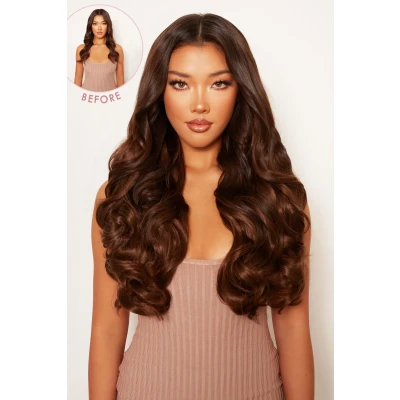 Effortless glam hair has never been so easy to achieve. Our 22’’ 5 Piece Curly Clip In Hair Extensions are the answer to all of your dreamy, voluminous hair goals in an instant. Weight: 250g Length: 22" Comes with 2 extra clips Suitable for all hair types Available in 32 colours The 5 pieces included are: 1 x 5 clips (weft is approx. 11.5inch/29cm) 1 x 4 Clips (weft is approx. 8.5inch/21.5cm) 1 x 3 Clips (weft is approx. 6inch/15cm) 2 x 2 Clips (weft is approx. 3inch/8cm) This set consists of 5 amazingly thick Premium Synthetic wefts which are pre-styled into defined curls, with no heat tools necessary. Prefer your curls more tousled and bouncy? Gently run through the hair with our LullaBellz Hollywood Wave Comb to style the prominent curls into volumised blowdry waves.
