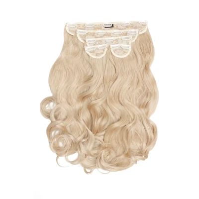 Effortless glam hair has never been so easy to achieve. Our 22’’ 5 Piece Curly Clip In Hair Extensions are the answer to all of your dreamy, voluminous hair goals in an instant. Weight: 250g Length: 22" Comes with 2 extra clips Suitable for all hair types Available in 32 colours The 5 pieces included are: 1 x 5 clips (weft is approx. 11.5inch/29cm) 1 x 4 Clips (weft is approx. 8.5inch/21.5cm) 1 x 3 Clips (weft is approx. 6inch/15cm) 2 x 2 Clips (weft is approx. 3inch/8cm) This set consists of 5 amazingly thick Premium Synthetic wefts which are pre-styled into defined curls, with no heat tools necessary. Prefer your curls more tousled and bouncy? Gently run through the hair with our LullaBellz Hollywood Wave Comb to style the prominent curls into volumised blowdry waves.