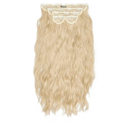 Lullabellz Super Thick Waist Length Wavy Clip In Hair Extensions 5 Piece, 26 Inch Length, Light Blonde