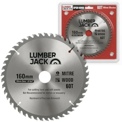 [DIMENSIONS] - 160mm Diameter - 60, teeth - 20mm bore (16mm reduction ring included) - 1.8mm Kerf (thickness of cut) [APPLICATION] - Ideal for along the grain and cross - cutting on softwood, hardwood, plywood, chipboard, multi-board panels, MDF, plated & counter-plated panels, laminated & Bi-laminate plastic, and Fibre-reinforced plastic. Providing a quality finished edge [MATERIAL] - Fully hardened steel blade body – Delivers accuracy and resists bending and deflection for true cuts. Tungsten carbide teeth provide excellent wear and heat resistance. The positive cutting angle provides fast and efficient removal of chips and swarf [FEATURES] - Incorporates an ATB (Alternating Top Bevel) offset tooth design, The angle of the tooth scores the surface of the wood in advance of the cut, cleanly cutting the wood fibres before the following teeth remove the chip. This provides for a much smoother cut, with much less chance of splintering the surface of the wood [COMPATIBILITY] – Compatible with Lumberjack, Festool, Dewalt Bosch, Makita, Ryobi and other circular saws which use a 160mm blade with a 20mm bore or 16mm (16mm reduction rig included), Manufacturer: Lumberjack