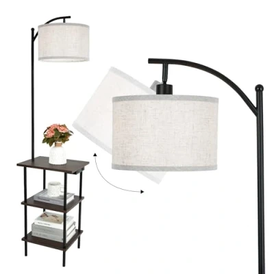 【3-Tier Shelf Floor Lamp with Strong Load Capacity】This floor lamp features three open shelves designed for everyday storage, with each shelf supporting up to 22 kg. Perfect for books, plants, décor or storage baskets, it combines lighting and organisation in one space-saving design. 【Built-in USB & Type-C Charging Ports】Charge your phone, tablet or other devices directly from the lamp while relaxing or working. The integrated USB and Type-C ports keep essentials powered and within easy reach—ideal for modern living rooms and bedrooms. 【Warm Ambient Lighting for Everyday Comfort】Designed to provide a soft, welcoming glow, this standing lamp creates comfortable ambient lighting for living rooms, bedrooms or home offices. Ideal beside sofas, beds or reading corners. Bulb not included. 【Stable, Space-Saving Standing Lamp】The vertical structure fits neatly into corners or next to furniture, while the sturdy base ensures reliable stability—even when the shelves are fully loaded. A practical choice for flats, bedrooms and compact spaces. 【Modern Brown Finish for Versatile Interiors】With clean lines and a warm brown finish, this shelf floor lamp blends effortlessly with modern, rustic or minimalist décor. A functional yet stylish lighting solution for everyday use.