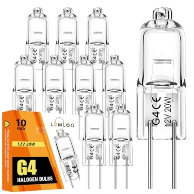 Powerful 380LM Warm White Glow: Experience brighter and warmer illumination with our 20W G4 bulbs. Each bulb emits 380 lumens of 2800K warm white light, creating a cozy and inviting atmosphere while enhancing visibility in your space. Superb 99 CRI for True Colors & Flicker-Free: With an exceptional Color Rendering Index (CRI) of ≥ 99, these bulbs reveal colors in their most vibrant and natural form. The flicker-free technology ensures comfortable, steady light, protecting your eyes from strain. Smooth Dimming Capability: Fully compatible with dimmer switches, these halogen bulbs allow you to effortlessly adjust the brightness from full intensity to a soft, warm glow. Perfect for setting the right mood for any occasion. Safe 12V DC Operation & Reliable Performance: Designed for low-voltage 12V DC systems, these bulbs guarantee stable performance and operational safety. Ideal for a wide range of applications including RVs, boats, cabinets, and accent lighting. Long-Lasting & Practical 10-Pack: Enjoy lasting value with a 3000-hour lifespan. This convenient 10-pack ensures you have reliable replacements on hand for multiple fixtures, saving you time and money on future purchases., Manufacturer: Lumlog