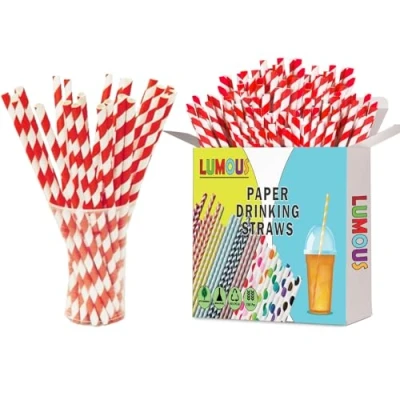 LUMOUS ROLA Paper Straws, 150 Pack Drinking Bio Degradable Straws Wedding Party, Party Restaurant, Juice (150Pcs Red White Stripes)