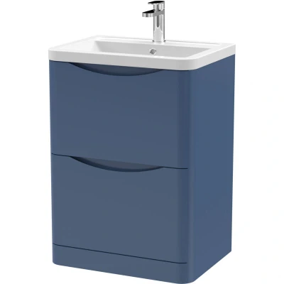 Lunar Satin Blue 600mm 2 Drawer Vanity Unit and Ceramic Basin LUN301A Nuie