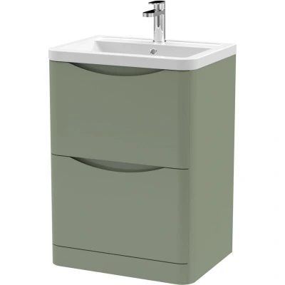 Lunar Satin Green 600mm 2 Drawer Vanity Unit and Ceramic Basin LUN801A Nuie
