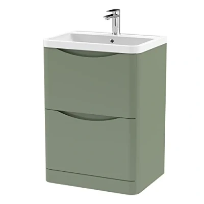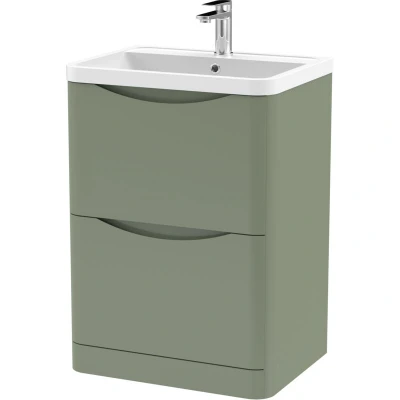 Lunar Satin Green 600mm 2 Drawer Vanity Unit and Polymarble Basin LUN801 Nuie