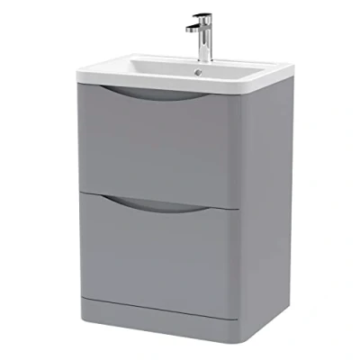 Lunar Satin Grey 600mm 2 Drawer Vanity Unit and Ceramic Basin LUN201A Nuie