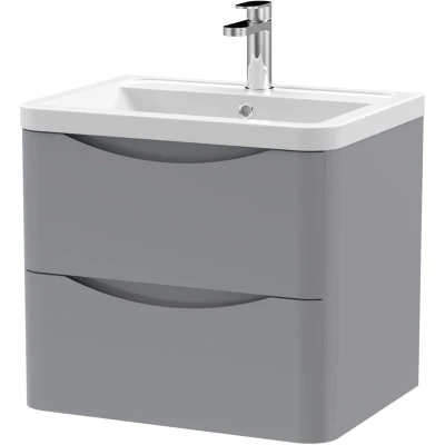Lunar Satin Grey 600mm Wall Hung 2 Drawer Vanity Unit and Ceramic Basin LUN202A Nuie