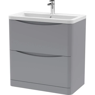 Lunar Satin Grey 800mm 2 Drawer Vanity Unit and Ceramic Basin LUN203A Nuie