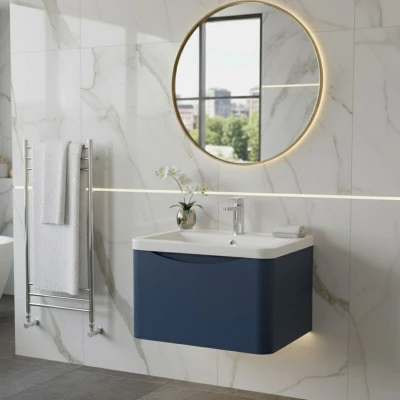 Lunar Wall Hung 1 Drawer Vanity Unit with Polymarble Basin 600mm Wide Satin Blue Nuie