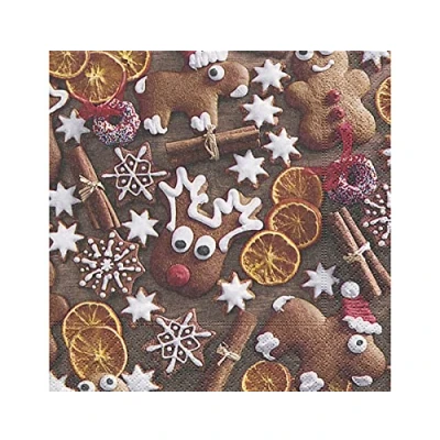 Lunch Napkins Napkin (33 x 33 cm) (Gingerbread Cookies) Gingerbread Cookies Stars Christmas Winter Snow Animals Forest Snowman Merry