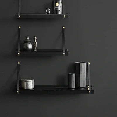 Amazon Enough to create space anywhere in your home Made from powder-coated steel With natural leather straps and washers made of solid brass and screws for attaching to the wall