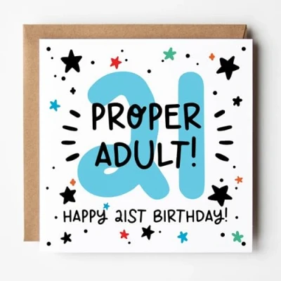 Celebrate Them Turning 21 and Becoming an Adult – A fun and cheerful 21st birthday card for young adults, perfect for celebrating this exciting milestone! All cards are printed on premium 350gsm FSC certified white card and come paired with a ribbed Kraft envelope. Blank inside, they offer space for your own message. Designed & Printed in the UK - Created by Lunella Stationery, a proudly independent British brand.