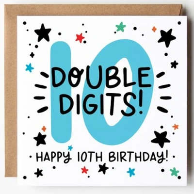 Celebrate Them Turning 10 – A fun and cheerful 10th birthday card for kids reaching double digits, perfect for celebrating this exciting milestone! All cards are printed on premium 350gsm FSC certified white card and come paired with a ribbed Kraft envelope. Blank inside, they offer space for your own message. Designed & Printed in the UK - Created by Lunella Stationery, a proudly independent British brand.