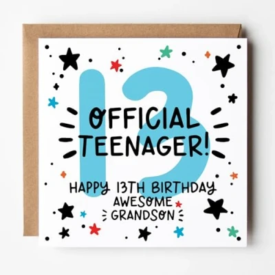 Lunella Stationery Grandson Birthday Card Series Ages 10 20 Cute & Trendy Design Blank Inside With Kraft Envelope Age 13 (Official Teenager!)